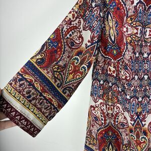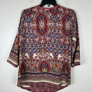 Womens Boho Peasant Blouse Popover 3/4 Sleeve Red Sz Small Colorful Hippie