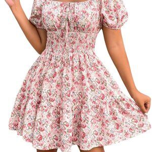 Features: This charming boho dress features a floral print, puff short sleeves, a flattering square neckline, shirred detailing, and a cute ruffle hem. The A-line silhouette makes it breezy and comfortable, perfect for showing off your style at vacations, parties, or casual outings.