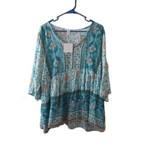 Women"s Boho Short Sleeve Top by Brown Coco Size 0XL NWT