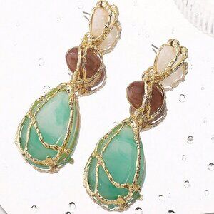 Women's Boho Statement Resin Stone Long Dangle Earrings