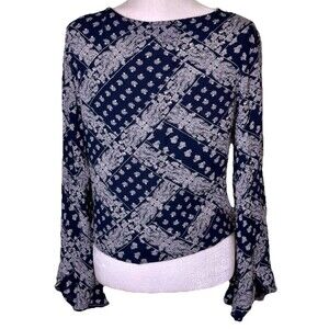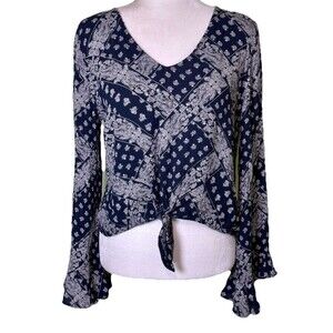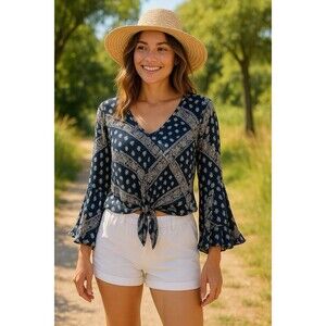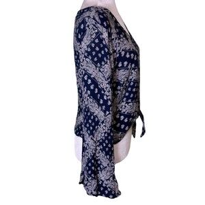 Women’s Boho Tie Front Retro Paisley Bandana Print Hippie Festival Indie Shirt S