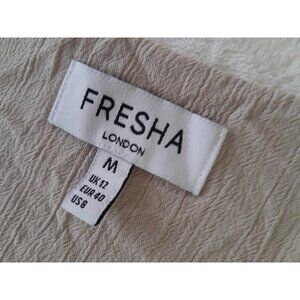 Womens Boho Tiered Cottagecore Prairie Peasant Midi Dress Minimalist Beige Sz 8