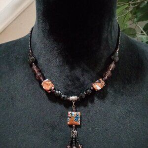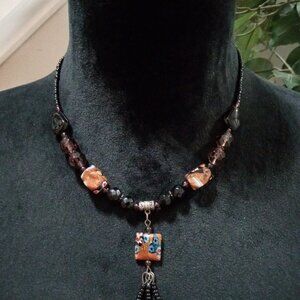 Womens Boho Tribal Style Stone Beaded Charm Collar Necklace with Lobster Clasp