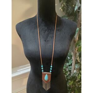 Women's Boho Turquoise Pendant Necklace With Fringe Design And Lobster Clasp