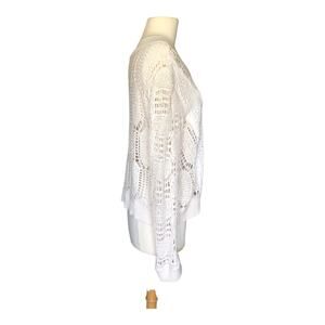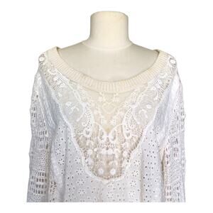 Women's Boho White Crochet Knit Lace Sweater Pullover Eyelet Long Sleeve Top