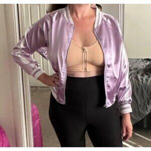 Material: 100% Polyester bomber jacket. Lightweight bomber jacket, Breathable and Comfortable. this womens casual bomber jacket will keep the wind out and keep you warm. soft and flexible ,makes your confident wearing outside. This satin bomber jacket women suitable for the Spring, Autumn and Winter, bomber jacket women, varsity jacket for woman.