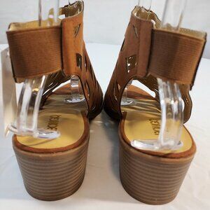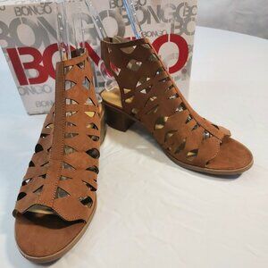 Womens Bongo Brown Block Heels Sandals Cutout Ankle Bootie Open Toe Shoe size 11
