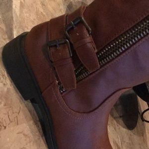 Brand New in Box! Size 8 Brown/Cognac Women’s Boots Synthetic Upper, Accent Zippers & Buckles,