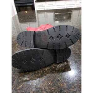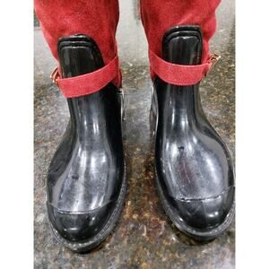 Womens Boots Size 8 Black & Red Patent Leather Comfort Buckle Round Toe Side Zip