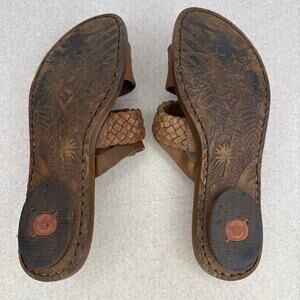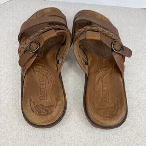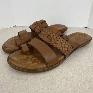 Women’s Born Brown Leather Strappy Slip On Buckle Thongs Sandals Size 9