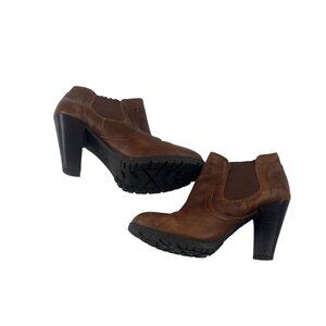 Womens Born Leather Ankle Boots Brown Chelsea Heeled Size 8