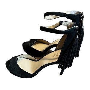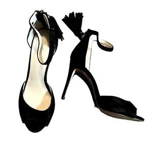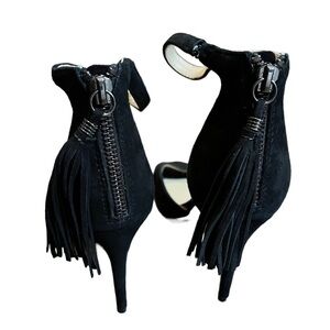 Women’s Botkier Peep Toe Heels Size 8 Black Suede Zip Back Tassels