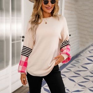 Women's Bottoming Shirt Round Neck Plaid Blocks Plus Size Sweater