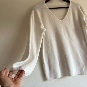 Women’s Boutique V Neck Wide / Flare Leg White Sweater Set Size Small