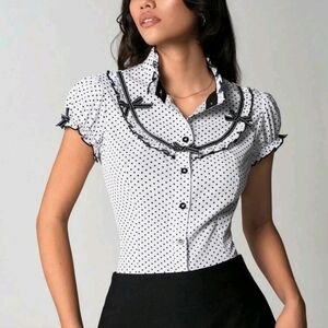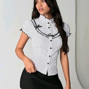 Women's Bow Decor Polka Dot Puff Sleeve Blouse