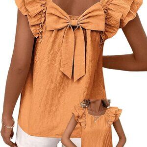 Charming Design: The tops showcase an exquisite ruffled sleeve design that adds a touch of femininity; while the delicate bow at the back brings a playful yet sophisticated element; The pleated texture enhances visual appeal to make you stand out