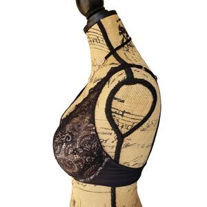 Women's Bra 32D Lace Plunge Double Push up Black Molded Sexy Bra 32D