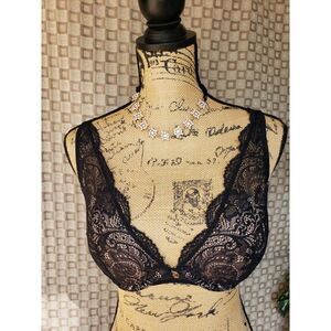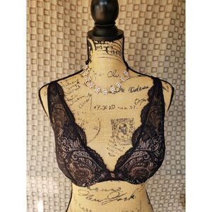 Women's Bra 32D Lace Plunge Double Push up Black Bra