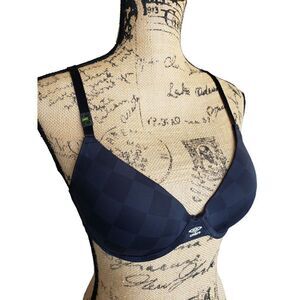 Women's Black Bra 34B Wear Everywhere Plunge Push Up T-shirt Bra Black Checkered