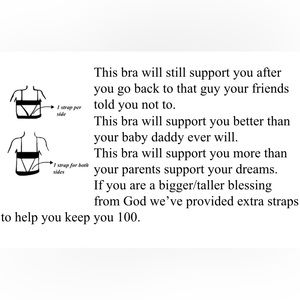 * Extra strap included connects bra to center belt loop to assist with holding pants up when bending over which is ideal for plus size women and adolescents. Package includes photo instructions.