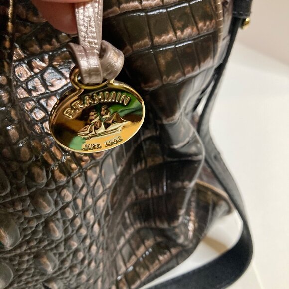 • Elisa Ironwood Alzette Tote Satchel Purse Bag croc embossed