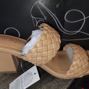 Women's Braided Heeled Sandals Strappy Square Open Toe Slip On Mules Chunky Block Heel. Brand New