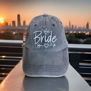 This women's bride hat cap is the perfect accessory for any wedding occasion. The cap is made of 100% cotton and features white embroidered stitching on a gray canvas fabric. It is adjustable and lightweight, making it suitable for all seasons. The hat is ideal for women and has a vintage-inspired design that is perfect for weddings. It is a great addition to any wardrobe and is sure to make a statement. Get your hands on this stylish and unique hat today!