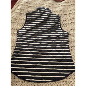 Womens British Khaki Quilted Vest Navy & White Stripes S Sleeveless Zipper Front