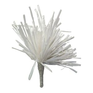This product is a women's brooch in the shape of an aster flower, designed with voluminous white ribbons that shimmer. The elegant and delicate design makes it a stylish accessory for any outfit. Perfect for adding a touch of femininity and sophistication to any wardrobe, this brooch is a versatile piece that can be worn on various occasions.