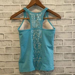 Women’s Brooks turquoise & white racerback built in bra athletic tank top Small