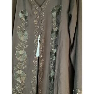 Women’s Brown Abaya With Beaded Floral Embroidery Made In India