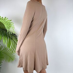 Women's Brown Boho Casual Long Sleeve Fit & Flare Comfy Mini Pocket Dress / S