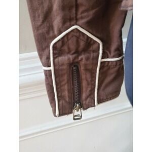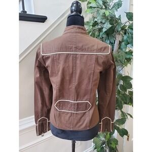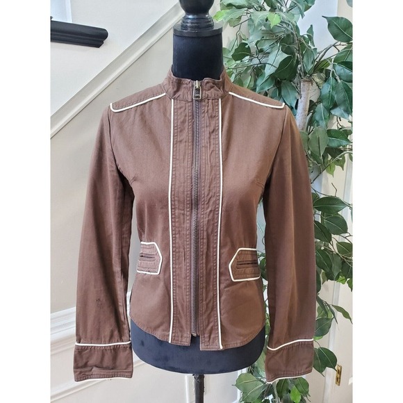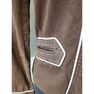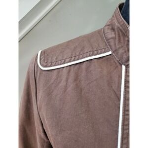 Women's Brown Canvas 100% Cotton White Edging Trims Full Zip Jacket Size Medium