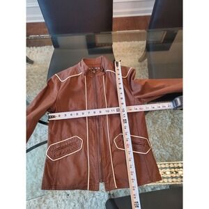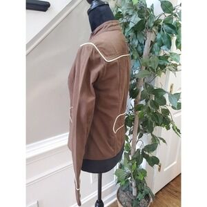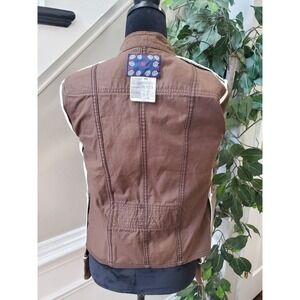 Women's Brown Canvas Contrasting White Edging Trims Full Zip Jacket Size Medium.