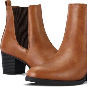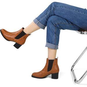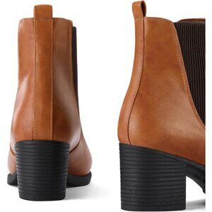 Women's Brown Chelsea Boots Chunky Block Heel Slip On Ankle Boots with Elastic