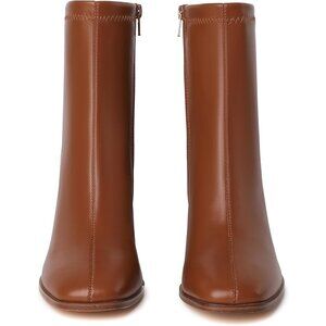 Women's Brown Chunky Block Heel Square Toe Side Zipper Short Booties