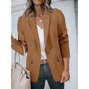 Women’s Brown Cicy Bell Casual Blazer Open Front Long Sleeve Office Suit