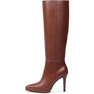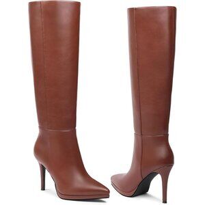 ⚡ Women's Brown Classic Stilettos Heel Pointed Toe platform Boots High Heel