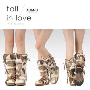 ⚡Women's Brown Comfort Suede Fur Shearling Stylish Knee High Winter Snow Boots