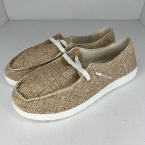 Womens Brown Comfy Flats Canvas Round Toe Low Top Casual Slip On Size 10 Loafers