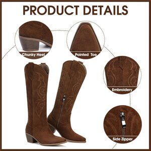 [Elegant Western Appeal] Platikly brown cowboy boots for women end an invitation to step into timeless style. These knee-high cowgirl boots beautifully blend Western charm with modern fashion, offering a classic yet chic look great for country-inspired elegance.