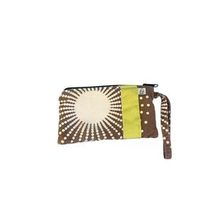 Women's Brown Cream Polka Dots Flat Card Wallet Zippered Pouch Bag