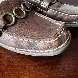 Stylish and comfortable women’s brown loafers, perfect for any occasion. See photos for wear and damage