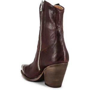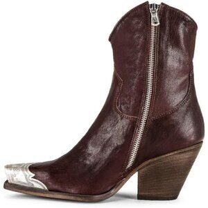 Women's Brown Faux Leather Steel Toe Side Zipper Block Heel Western Ankle Boots