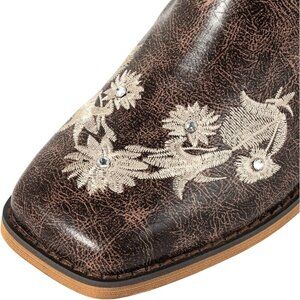 ⚡Women's Brown Floral Rhinestones Square Toe Cowboy Boots Western Wide Calf