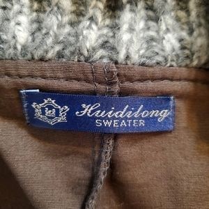 Women's Brown Grey Long Zip Up Ruffled Bohemian Sweater Coat Small