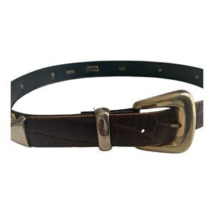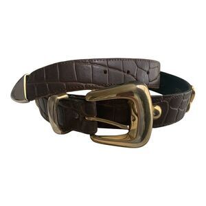 Women's Brown Leather Belt SIZE 32"- 36" Gold Buckle Studs Adjustable Crocodile