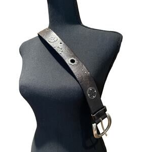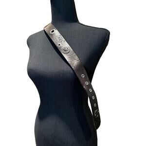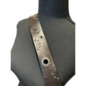Women's Brown Leather Belt with Embellishments and silver Hardware, Small, EUC