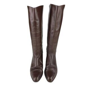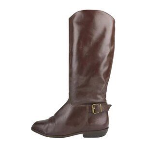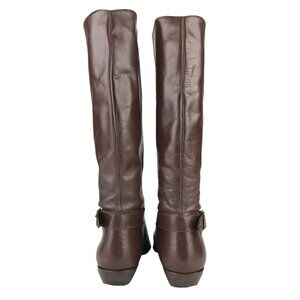 Womens Brown Leather Pointed Toe Knee High Buckle Strap Riding Boots Size US 7M