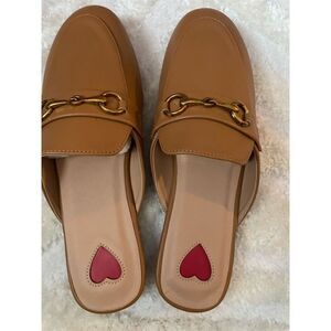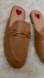 Women's Brown Leather Slip-On Mules Size 7.5 w/ Buckle & Heart Accent